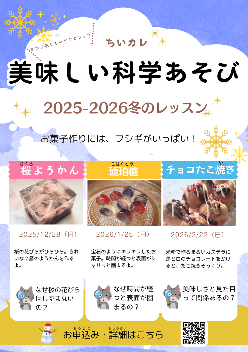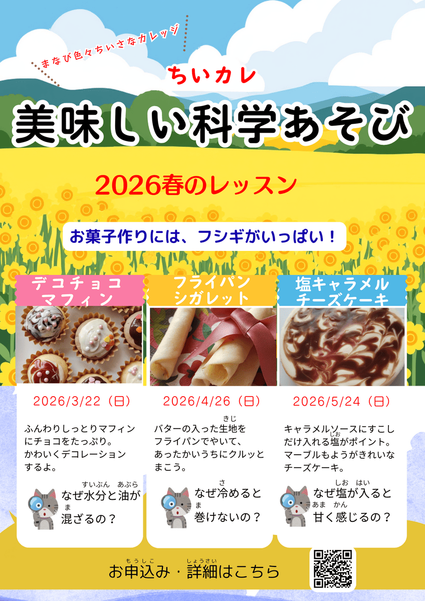 横浜の大人気お菓子教室のサロンで月に1回、「美味しいお菓子作り×科学実験」のレッスンを開催しています。